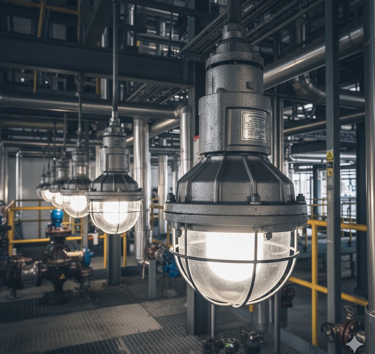 Our range of explosion-proof lighting is designed for hazardous environments such as oil & gas facilities, chemical plants, offshore platforms, and industrial zones where safety is critical. These fixtures are certified to ATEX and IECEx standards, ensuring safe operation in environments with flammable gases, vapors, or dust.